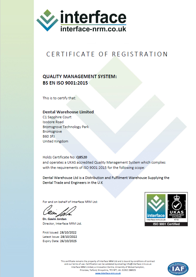 Huge efforts are made to stock and supply from reputable manufacturers whose factories are certified with ISO and all products are CE marked. These long term relationships with major manufacturers go back to the very start and Dental Warehouse is proud to be regarded by these companies as their main stockist in the UK.